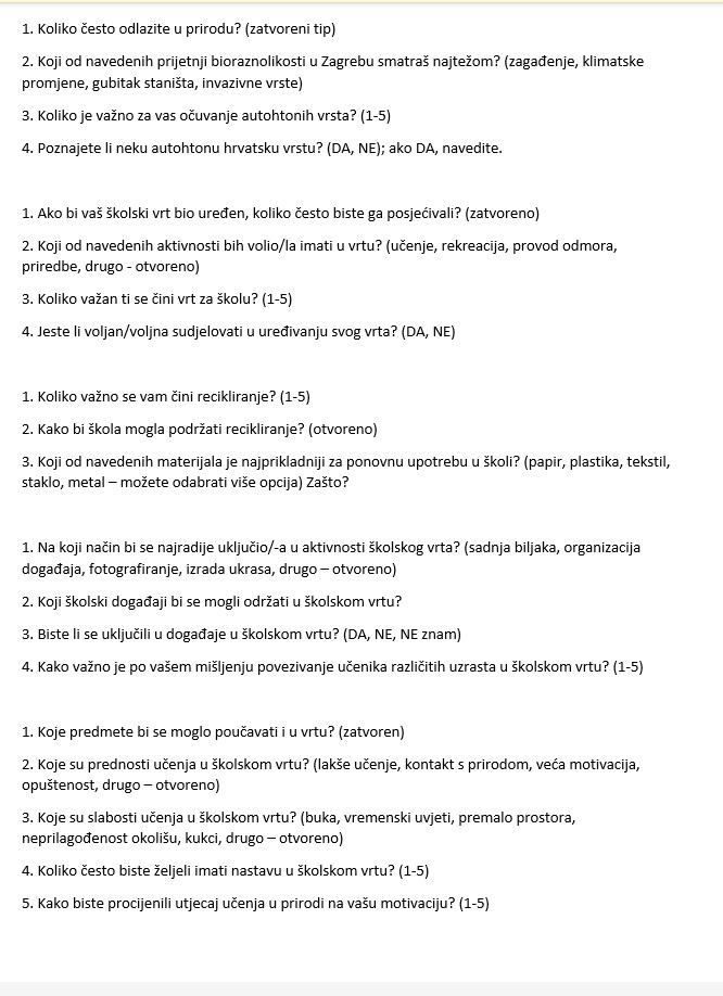 Mi smo pripravili vprašanja na temo vrta za hrvaške dijake ter jih tudi prevedli v hrvaščino.